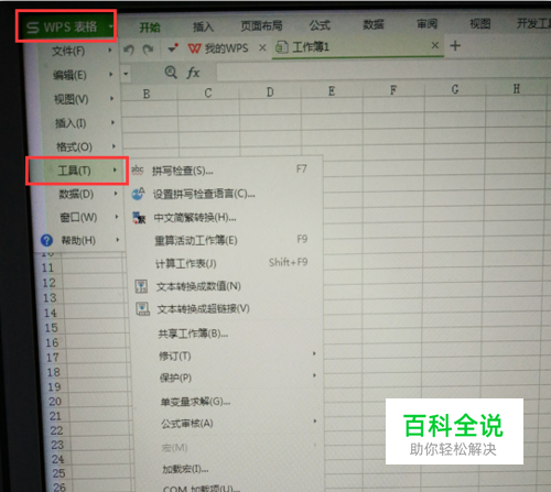 打开电脑的WPS表格操作界面点击【工具】【选项】到下一步。