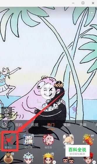 点击热门里“飘爱心”特效。