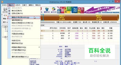 用U盘启动进入PE系统,打开分区工具Diskgenius→硬盘→重建主引导记录(MBR)