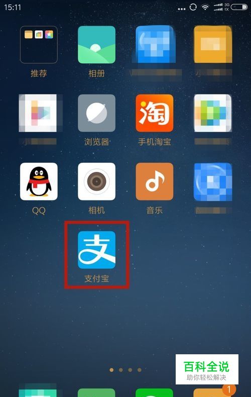 支付宝里的应用太多了,在首页上没有显示,所以点击【更多】里面去找,如图所示。
