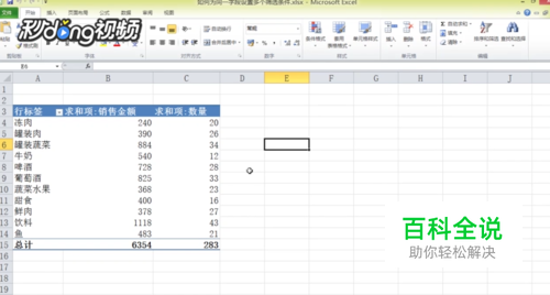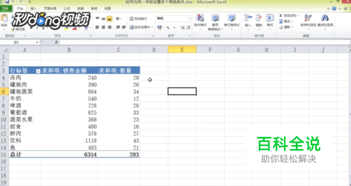 首先打开Excel,以其素材为例,我们筛序蔬菜,荤肉,同时不包含灌装字样的商品。