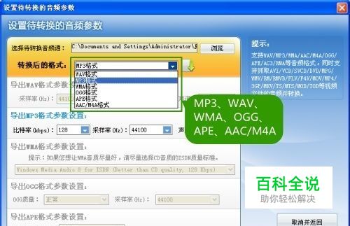 选择AMR要转换的MP3格式 这款软件不仅可以将AMR转换成MP3,还支持转换成其他流行的音频格式,譬如WAV、WMA、AAC、M4A、OGG、APE等音频格式,其中,M4A/AAC可以在iPad、iPhone、iPod等苹果系统产品和一些移动设备上播放,WAV是无损格式,WMA是微软的音频格式,有需要的朋友也可以导出这些流行的格式试试。