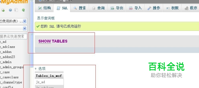 mysql数据库怎样显示所有的表? 2025-05-17 07:36:49 mysql数据库怎样显示所有的表,php也可以使用该语句: 语句为:show tables; 这样就把您所在的数据库里的所有的表都显示出来了如图: 赞 (0) 相关推荐 MySQL数据库创建.修改和删除表操作实例介绍 其实对很多人来说对于SQL语句已经忘了很多,或者说是不懂很多,因为有数据库图形操作软件,方便了大家,但是我们不能忘记最根本的东西,特别是一些细节上的东西,可能你用惯了Hibernate,不用写SQL语 ... 远程访问mysql数据库 前面讲到Red Hat Linux系统下mysql数据库的安装方法,下面介绍如何远程访问mysql数据库. 操作方法 01 user表中记录了不同的用户对mysql数据库的访问权限 如果我们要远程访问 ... mysql数据库允许远程连接 本篇主要介绍Linux下如何配置mysql允许远程连接,一般我们安装好mysql后无法远程连接. 操作方法 01 首先我们在linux系统上安装mysql,本文默认linux系统可以联网或者已经挂载光 ... mysql数据库中删除表外键的方法php通用 mysql数据库中怎样删除表外键,很多时候我需要删除表外键. 首先给一个实例:alter table newexample drop foriegn key c_fk;这里我们是要删除表为newexa ... 使用PHP连接MySQL数据库 创建表 (php mysql) MySQL 是最流行的开源数据库服务器,那我要使用PHP在MySQL的数据库创建一张表,实现通过PHP操作数据,那我们先要获取连接,拿到MySQL数据库的账号密码,以下操作数据库的详细步骤: 操作方法 ... 怎么通过SQL语句查看MySQL数据库的表空间状态 MySQL数据库提供丰富的sql命令,可以很方便的查看数据库表空间状态 操作方法 01 查看数据库的索引空间大小 在MySQL Workbench中运行以下SQL语句: -- 以GB为单位 SELEC ... 图解MySQL数据库表操作(一) MySQL数据库中的数据存储在被称为表(tables)的数据库对象中.表是相关的数据项的集合,它由列(字段)和行(记录)组成. 本篇将详细介绍数据表操作中的准备工作.创建数据表.查看数据表.记录操作记 ... mysql数据库中删除表的方法与命令,php通用 mysql数据库中删除表的方法与命令怎么写,命令: drop table example; 意思是删除eaxmple表. 在php中也可以用这个命令.如图: mysql数据库建表和SQL修改表结构 Mysql是我们经常使用的数据库之一,下面小编教大家如何使用Mysql新建数据表以及运用SQL更改表结构. 操作方法 01 打开Navicat for MySQL,找到一个数据库,然后右键单击表,选择 ...