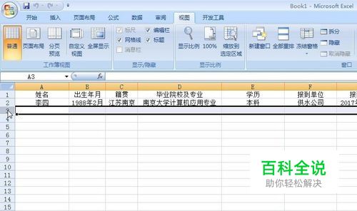 如何让表格前面几行显示? 打开EXCEL文档,如果我们在滚动鼠标时,要让前面两行始终显示, 首先点击 视图。