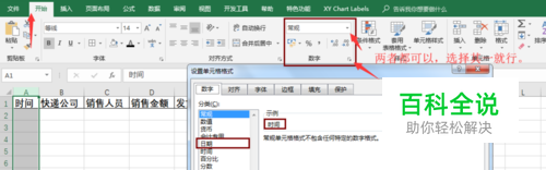 然后对各项进行数据类型的设定,如日期,设定为日期类型,选中A列,找到【数字】点击右下角选项,找到日期格式选中所需要的样式,在这里,我使用2018-07-15的样式,如图所示: