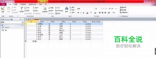 打开Access 2010,并打开其中一张表。假定我们要删除字段五中为“C”的那条记录。