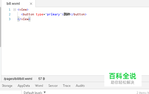 第一步,打开微信小程序开发工具,新建一个wxml文件,并在文件插入<view></view>和<button>,如下图所示: