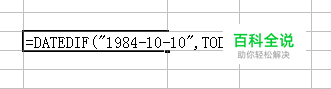 题目: 计算出生日期为1984-10-10人的年龄 公式: =DATEDIF("1984-10-10",TODAY(),"Y") 我们在EXCEL中输入=DATEDIF("1984-10-10",TODAY(),"Y") 就可以得到我们要计算的这个出生年月的日期的年龄(计算日期TODAY()为2015年8月7日),得到的结果是30,表示1984年10月10日出生的人,今年为30岁