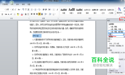 点击“开始”菜单下,“样式”右下脚的小箭头,选择“标题1”(记得看看所属的大纲级别是不是一级)。