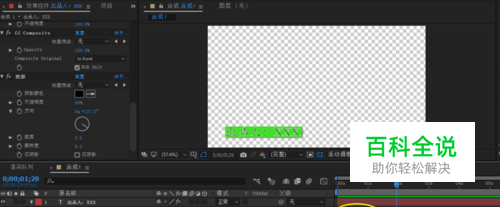 为了字幕不被色条覆盖。在这里再加入一个CC合成。首先,选取好填充的颜色,再添加CC合成效果进来。完了之后,底下的文字可见了。如果背景色条不够文字长,我们就可以调整水平模糊的半径值。同样也可以调整垂直方向的模糊半径值至合适的位置。如图。