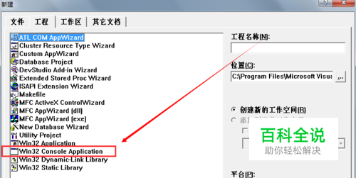 选择“新建工程”,新建一个“Win 32 Console Application”工程。