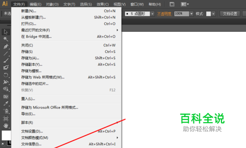 打开电脑桌面的ai软件,点击打开文件,选择打印,如图所示