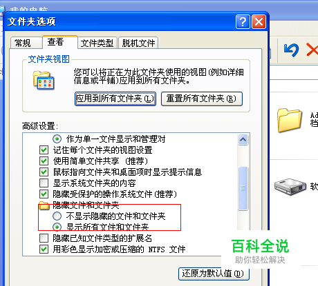 首先,显示电脑隐藏文件。步骤打开【我的电脑】——【工具】——【文件夹选项】——【查看】——【显示所有文件和文件夹】。