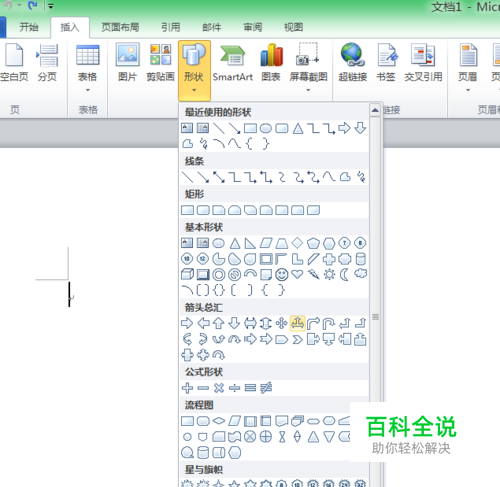 打开word,在上面一栏找到插入,然后点击形状,不同word的版本,绘图工具的位置是不一样的。