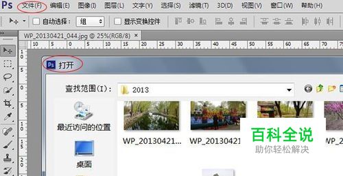 运行PhotoShop软件,打开所要上传的图片文件,可按下快捷键“Ctrl+O”,然后在相应目录下找到图片;