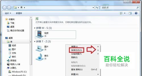 然后再使用鼠标在文件夹的空白处点击右键→排序方式