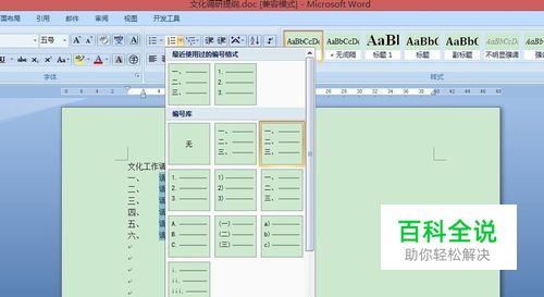 选中各列已编号文字,点击编号按钮右侧箭头,选中“定义新编号格式”,打开