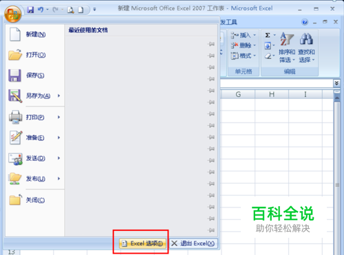点击左上角的office按钮(如遇版本不同,点击左上角的文件),然后点击“Excel选项“(如图);