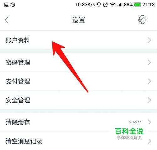 然后在设置界面,点击图示位置的“账户资料”,进入资料设置。