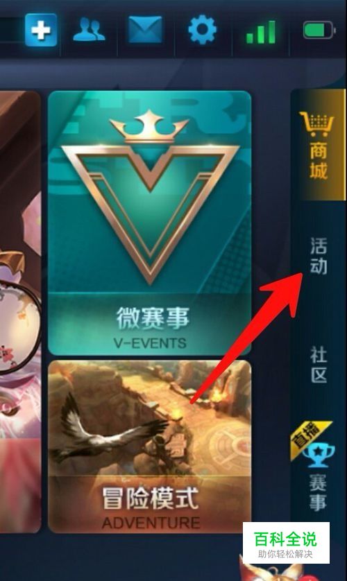 登录王者荣耀游戏客户端,在首页,点击右侧导航栏“活动”。