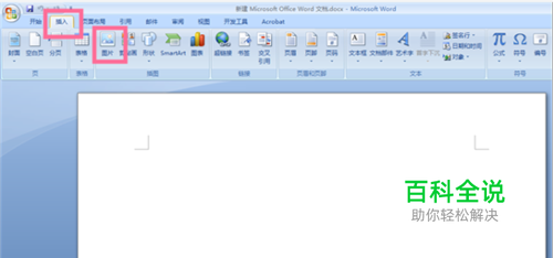 点击打开WORD软件,新建一个新的WORD文档,在弹出的文档编辑页面的首页,我们点击上方的主菜单栏里的【插入】按钮,此时下方会弹出插入子菜单栏,我们点击子菜单栏里的【图片】按钮。