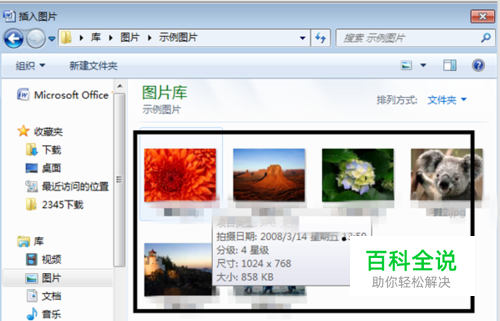 此时页面会弹出一个插入图片选择的选择页面,我们在此选择页面里选择一个我们需要插入WORD文档里的图片,选择完毕后我们点击【插入】按钮。