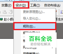 这里手工布线费时费力,所以采取自动布线。一般情况下,布线是不允许跳线的,所以这里需要设置一下,点 设计 --规则