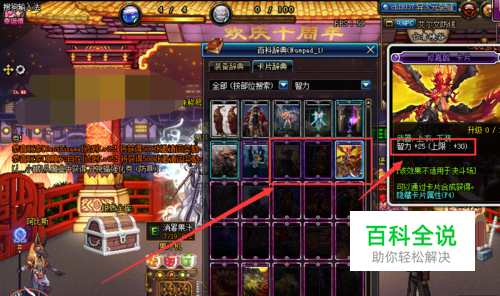 武器,上衣,下装附魔选择修嘉璐卡片。附魔效果为增加角色智力。除了它,还可以选择其他增加智力的卡片。