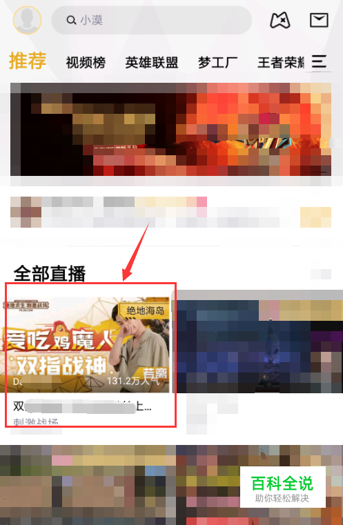 在首页中推荐的直播房间,随便点一个进入。