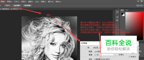 第二步,图像——调整——应用图像,关于这个命令,大多数人,包括我也不是特别理解,但是这并不重要,只要达到效果就行。这儿分享一下个人意见: 首先应用图像只有一个通道,且通道就是我们复制的那一个通道,然后最好改变的就是混合模式,这儿大家可以查一下哪些是变亮模式,哪些是变暗模式,哪些是去灰模式,个人觉得去灰模式最常用,抠发丝时经常遇见发丝和周围边缘差不多,也就是灰色,这样去灰模式就比较管用了。