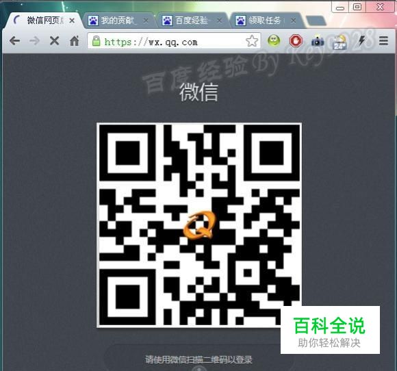 首先我们需要在电脑上用浏览器打开微信网页版网站。然后会出现一个二维码,提示用微信扫描: