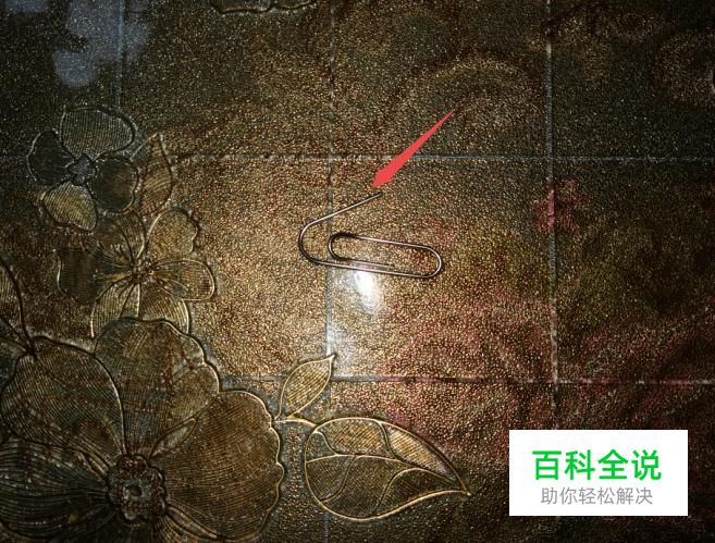 我们找根回形针,然后我们将回形针进行适当的掰出来一些,如图所示的效果;