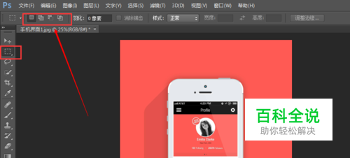选择左侧选区工具栏,然后查看选区菜单栏可以看到有加选、减选等工具,如图