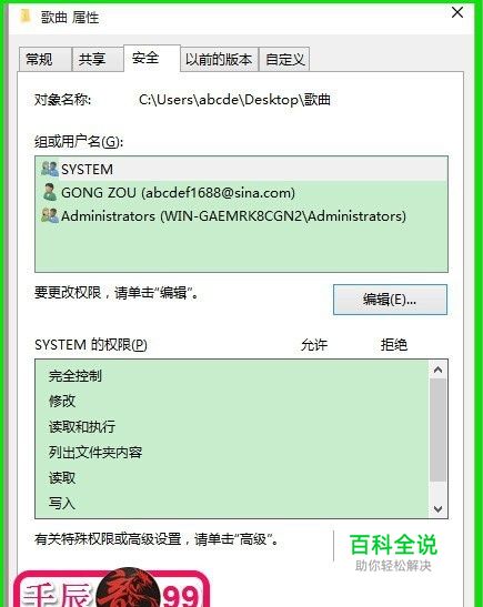弹出的对话框内容依旧,文件夹访问被拒绝,你需要权限来执行此操作。 用户GONG ZOU是既不能打开歌曲文件夹,也不能删除歌曲文件夹,这样设置以后,可以确保他人无法访问和误删除保存有重要文件的文件夹了。