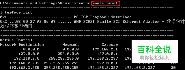 我先查看一下电脑里的路由表,输入“route print”,这条命令的字面解释就是“路由表打印”。