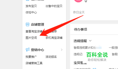 首先打开淘宝网卖家中心,找到图片空间。