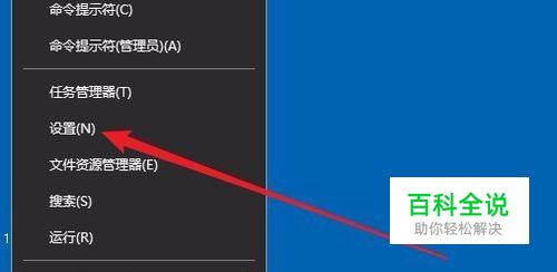 在Windows10系统桌面,右键点击桌面左下角的开始按钮,在弹出的菜单中点击“设置”菜单项。