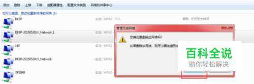 接着选择我们需要删除的无线网络,点击鼠标右键,选择删除。接着会提示是否删除,我们选择是,就可以删除该无线网络及其配置信息了。