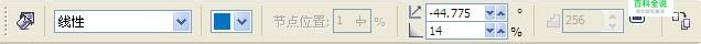 先给这个字做一个渐变的效果,“G”选择交互式填充工具,然后在工具的属性栏选择线性填充,以及线性渐变的颜色,渐变中心点以及角度,都可以通过数值进行精确的设置。当然我们也可以手动对对象进行一个渐变填充的动作,手动拖动控制柄,然后调整角度或者修改颜色等。