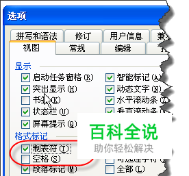 首先我们分析一下原因,大家在WORD工具菜单下打开“选项”对话框,勾选“制表符”