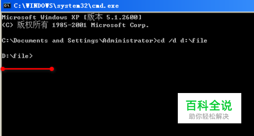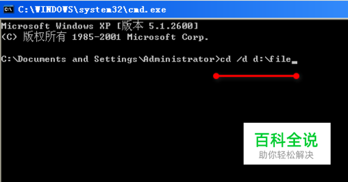 在打开的CMD窗口中输入:cd /d d:\file (或者其他你想要进入的路径)d:\file为你想要进入的路径