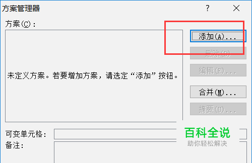 在“数据”选项下的“模拟分析”下拉按钮中,单击‘方案管理器’