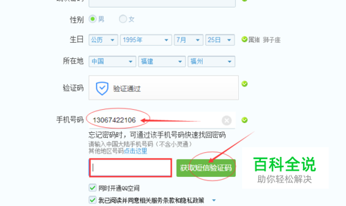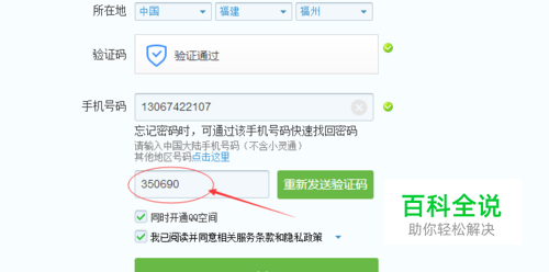 完成安全验证之后,在手机号码那一栏输入自己的” 手机号码“,点击一下“ 获取验证码”,然后拿出手机等待腾讯后台给你发送的短信,里面会看到验证码。(验证码一般是六个数字)