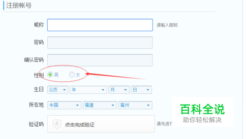 接下来就可以设置自己的性别啦,你是帅哥你就设置” 男“,你是美眉你就设置为“ 女”【如下图】