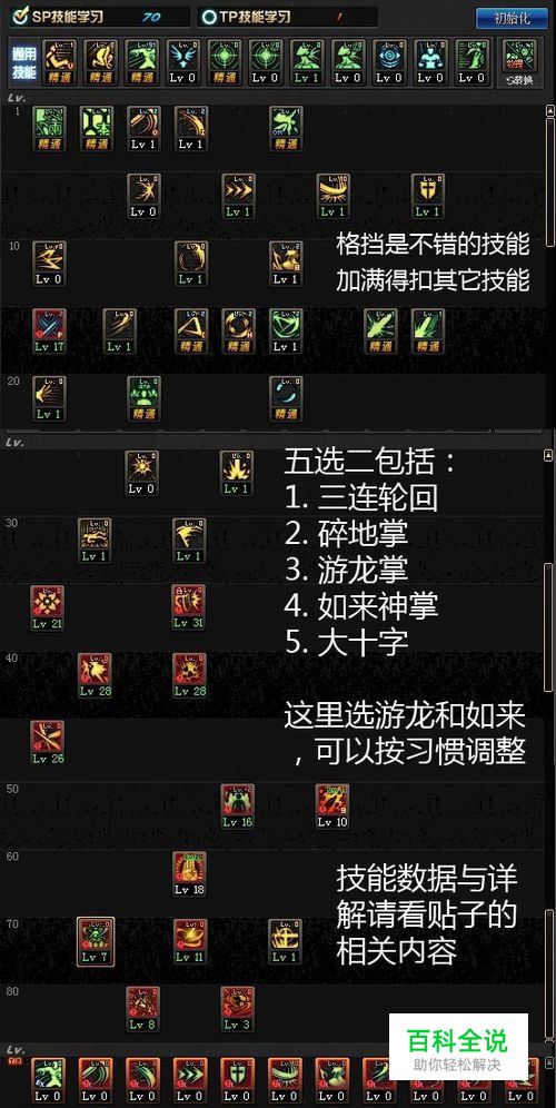 争议点:1. 三连轮回:SP消耗小,伤害高于碎岩和游龙掌,CD也只有碎岩和游龙掌的一半,但施放需要一定的时间,不适合爆发需求。近身压制性的技能,但输出环境不好的情况下不适合使用,会被反打。2.碎地掌:优点是单段,总施放时间短。比较重要的一点是,只打地面单位,怪物小浮空时就打不到了,影响节奏。大家可以试试吊机起吊后、不动举起来后能不能打中怪物。技能范围不大3.游龙掌:范围大,清小怪方便。不消耗无色,有守舰炮需求时会方便一点。4.如来神掌:干脆利落的爆发技能,堆技能时成长率高。5.啸空十字斩:控制的同时兼容输出,非常适合收尾的技能。我个人的意见是,如果拿不定注意,可以满游龙和如来神掌,大十字点一级。1级大十字是满级大十字的45%伤害,可以牺牲一点收尾伤害来换一个小技能游龙掌。如果对收尾伤害有需求,可以放弃其它一个技能来满大十字。