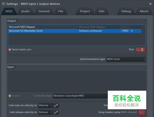首先打开软件 FL Studio 20,在菜单栏“OPTIONS”选项中,打开“MIDI settings”,也就是MIDI 设置(或使用快捷键 F10直接打开),弹出“设置-MIDI 输入/输出设备”,在 MIDI 下,输出设备右下角的端口设置为 116。输入设备下方的控制器类型选择 Novation Launchpad MK2,端口设置为 115。