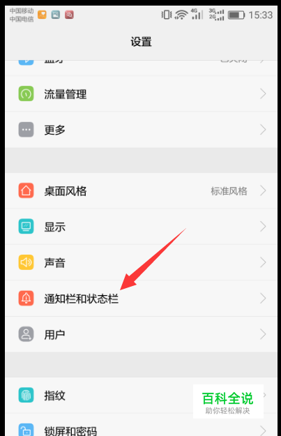 打开设置之后,可以看到很多的选项,我们再来找“通知栏和状态栏”这个选项,然后打开它