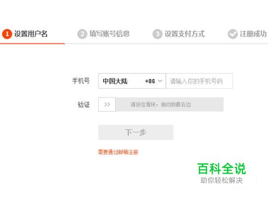新用户注册,输入手机号码进行注册,然后按住滑块,拖动验证,点击【下一步】