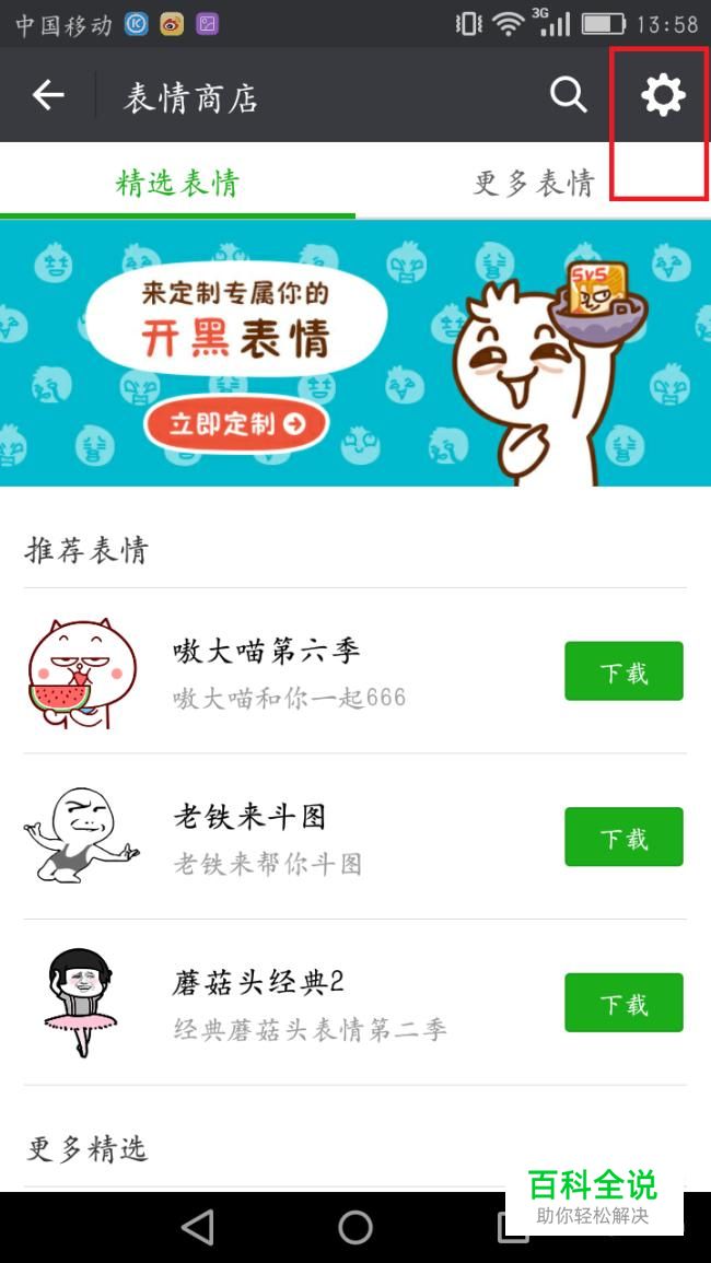 在表情商店里,我们可以直接看到下载表情,要设置表情需要点下右上方进入“我的表情”里去设置。