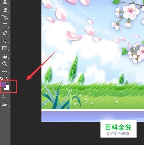 在该对话框内选择我们需要的素材图片,点击打开选项进入编辑工作区,选择背景图片,新建一个图层,并将主背景层复制一份,选择新建的图层,找到前景背景选项,将前景色设置为紫色,如图所示: